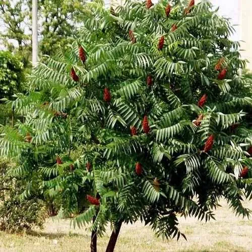 Уксусное дерево или сумах (сумак) пушистый (оленерогий) (Rhus typhina) – вид растений семейства Анакардиевые (Anacardiaceae). вырастает до 4-6 м в высоту, иногда до 10 м. В молодости растения быстро растут, позже рост замедляется. Крона дерева очень широкая (нередко ее ширина значительно превышает высоту дерева), чаще зонтичной формы, рыхлой и просвечивающейся.